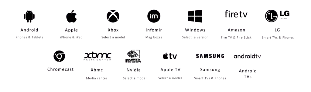 Fully compatible across a wide range of devices, including, MAG, Android, Apple, Enigma, Box, PCs and Smart TVs.
